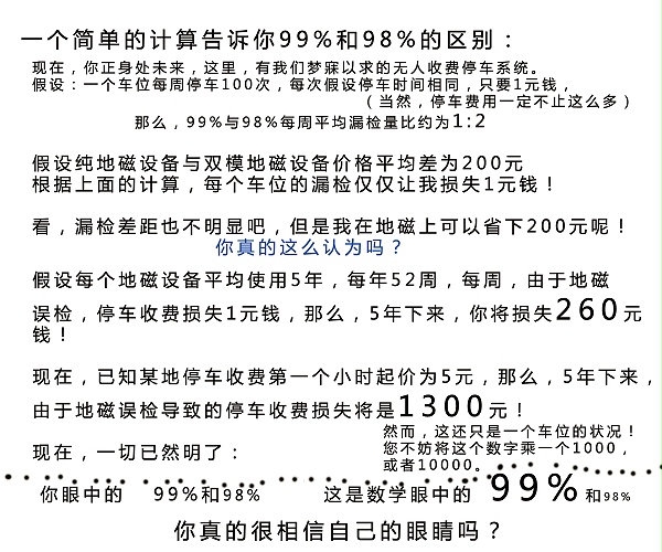 遗憾的是,在磁场干扰的面前,纯地磁车辆检测设备真的可以达到98%的准确率吗?这个问题的答案已无需多言了!检测准确率的问题迫在眉睫!